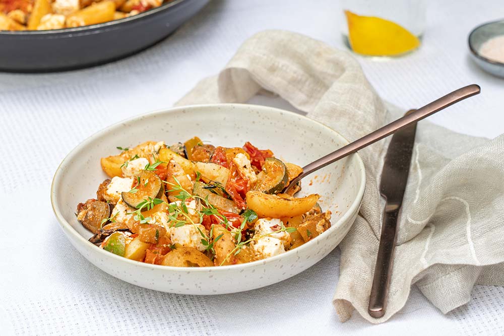 - Gemüse auf einem Teller mit dem Feta anrichten, servieren und genießen! 😋