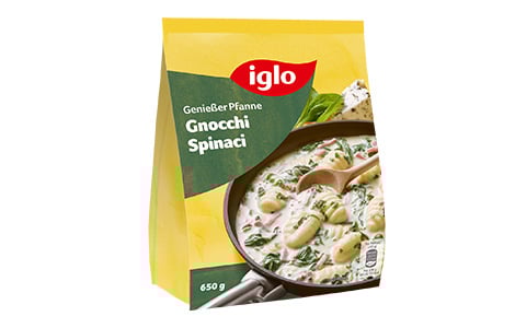 Und apropos kräftiges Aroma! Für Liebhaber der italienischen Küche haben wir noch zwei weitere Schmankerl kreiert: Gnocchi mit zartem Blattspinat in einer aromatischen Käse-Schinken-Sauce. Und jetzt ganz neu bei iglo: Tagliatelle Funghi mit frischer Pasta und cremiger Pilzsauce.